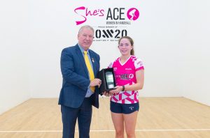 Photo of Catriona Casey with the She’s Ace award courtesy of GAA Handball.