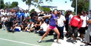 Several SoCal women showed up to compete for bragging rights and the title. Young Lilly Perez put up quite a battle in the semis against Ashley Moler, taking her to a tie breaker. Moler mustered together points to take the match. The other semis had a West Coast vs. East Coast showdown with Jackie Ruiz vs. Melissa Sky. Sky took the match in two games leading her way to the final. The finals proved to be one of the most exciting matches of the event. Before the game, other games had to be rescheduled to make way for room for all the spectators. Rumors say over $5,500 in bets were on the line, as SoCal was treated to viewing women’s handball for one of the first times in big ball. After extensive rallies, dives, and rants from the crowd, Moler prevailed over a fatigued Sky for the first women’s title.