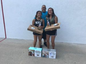 When not competing in boy’s and girl’s singles brackets at the Stay in School extravaganza, the youngsters had the opportunity to learn from the best in the game. New York City 1-Wall stars Tywan Cook, Hector Velez, Allan Sanchez, and Carlin Rosa coached clinics for the youngsters throughout the day, emphasizing footwork and the fundamentals to making solid contact with the ball. The pros set up cones in various spots on the court, with the youngsters running through the cones and serving after reaching the final cone. The older junior players also had the opportunity to rally with and play points against the top players.