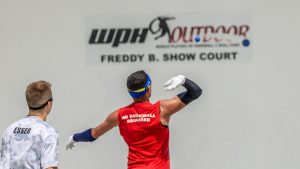 Montijo trailed 2-12 in game two and seemingly had no answer for Esser’s serve-and-shoot attack. Esser led 14-7 in game one and 12-1 in game two in his Icebreaker semifinal with Shorty Ruiz before collapsing and suffered the same fate against Montijo in game two of their third place final. Montijo scored the final 20(!) points of the match, earning third place in Tucson’s pro handball return.
